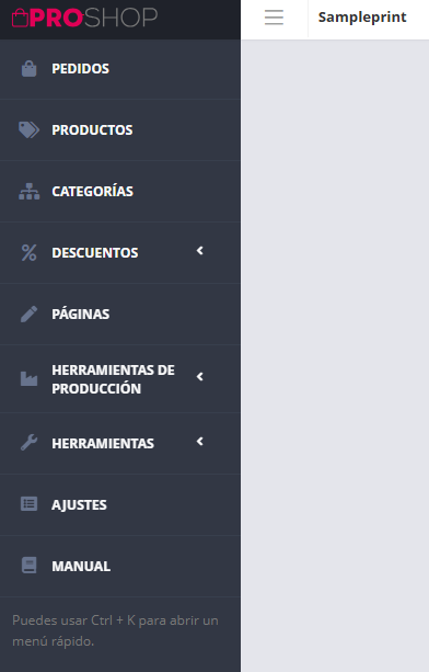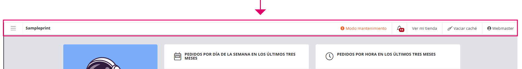 El menú superior está accesible en todas las páginas del gestor de la tienda