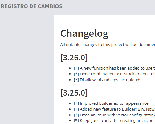 Actúa como botón de acceso directo al histórico de actualizaciones y versiones.