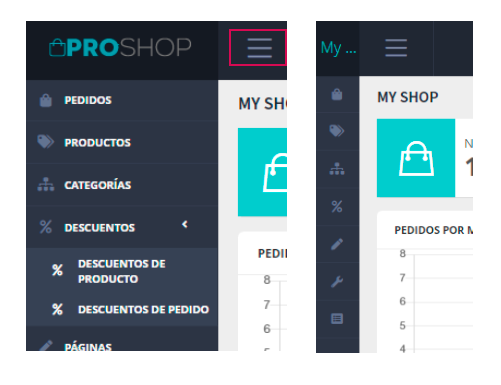 Haciendo clic en el icono de menú podemos recoger el menú lateral.