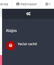 - Icono de ajustes que despliega el menú Atajos con botón para vaciar caché.