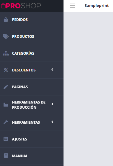 Desde esta aplicación se pueden gestionar todas las tareas del e-commerce. Para poder navegar entre los distintos apartados utilizaremos el menú lateral. Para acceder al Dashboard o escritorio pulsaremos sobre el logotipo de la aplicación. Los elementos que componen el Dashboard están visibles y accesibles siempre y solo desde la vista del gestor.