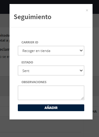 2. Que el número de tracking del envío esté añadido en el producto del pedido.