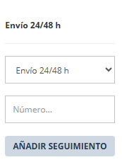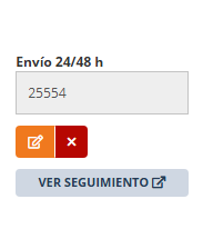 En el campo de "Número..." se escribe el número de seguimiento del envío. Para guardar el cambio hacer clic en el botón "Añadir seguimiento. Cambiará a esta apariencia. Mostrando el botón de editar y el de eliminar.