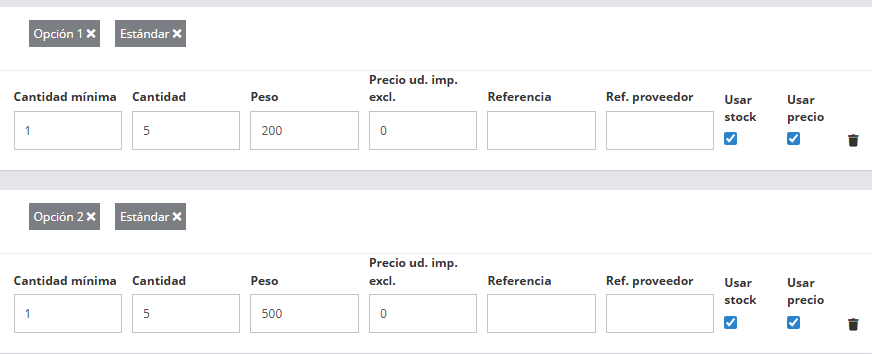 En el supuesto de que la combinación tenga un peso de 0 o no tener combinación relacionada, se tienen en cuenta el resto de ajustes de tipos de peso.