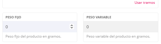 La interfaz de peso en valores dispone de dos ajustes. Peso fijo en gramos y peso variable en gramos.