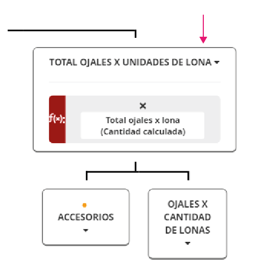 Vista de las características de tipo operación matemática desde el árbol de flujo de cantidades de un producto creado