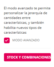 - Cada tipo de característica tiene parte de la interfaz de modo avanzado igual que el resto. Pero va a diferir en la interfaz de crear valores y de cómo se visualizan del lado del administrador y del lado del cliente.