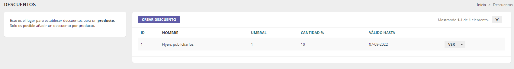 Si hay más de uno activo, se seleccionará el primero según el orden de la lista. PuedesSe puede cambiar el orden de los descuentos con solo arrastrar desde el icono de la columna posición.