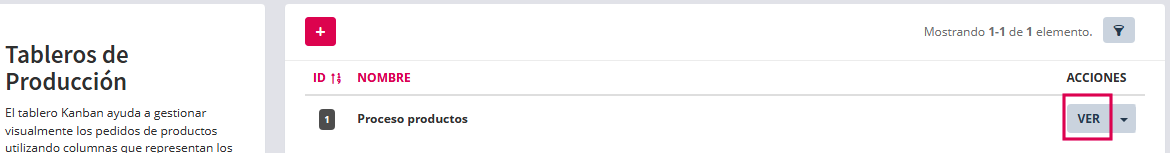 - Acceder a visualizar el Kanban con clic en ver en el listado de Kanban creados. En el que interese.