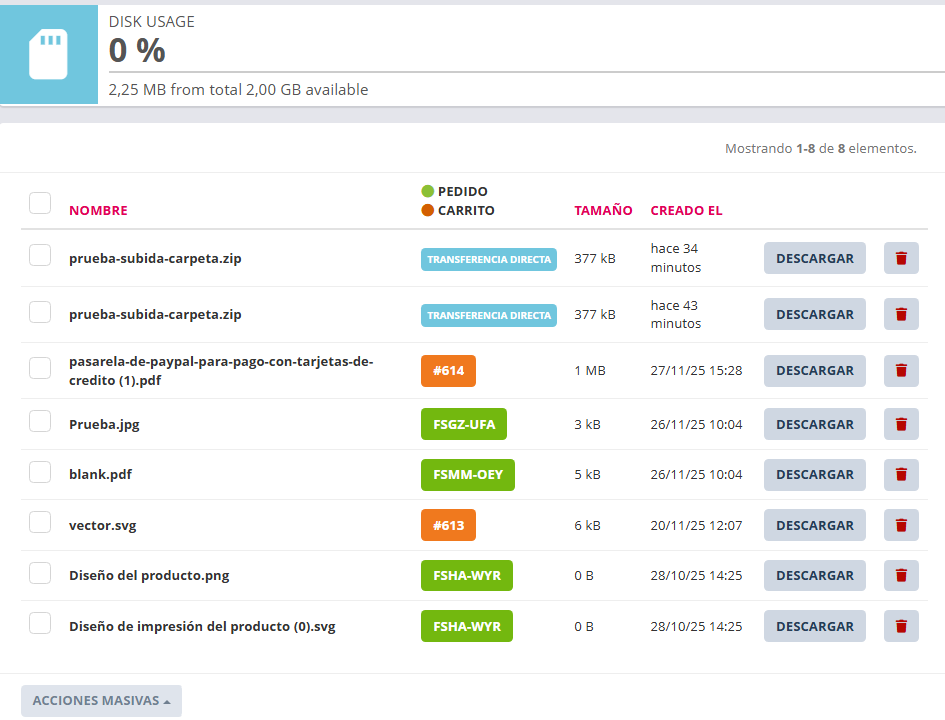 Los archivos subidos estarán disponibles en la sección de "Archivos del clientes de esta herramienta" del administrador de Wakaprint. No están vinculados a ningún pedido. Para usuarios anónimos. Es un sistema creado para facilitar el envío y gestión de los archivos de pedidos en tienda.