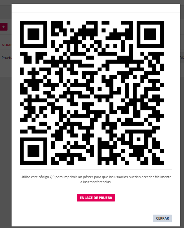 En esta sección se encuentra además el botón para acceder a la interfaz de creación de enlaces para transferencia directa de archivos.