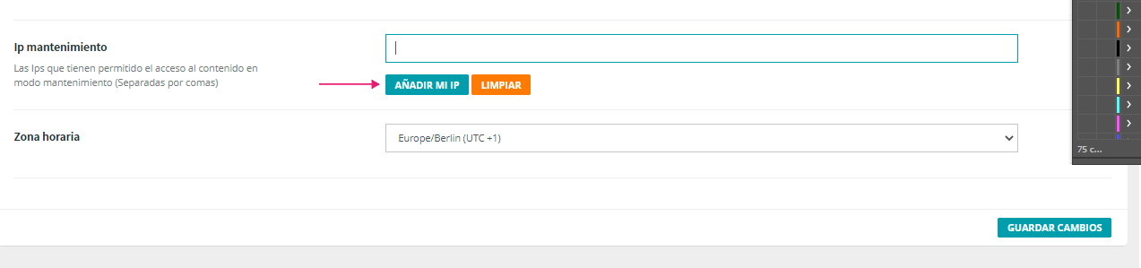 Para ver la tienda pública cuando está en modo mantenimiento acceda al menú Ajustes->Técnico desde el gestor y añadir la IP con el correspondiente botón.