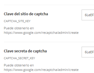 Se obtiene en https://www.google.com/recaptcha/admin/create - Clave secreta de captcha