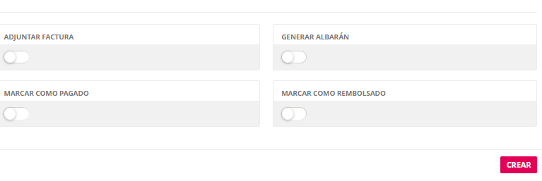 | Adjuntar factura botón | Activar o desactivar adjuntar factura |