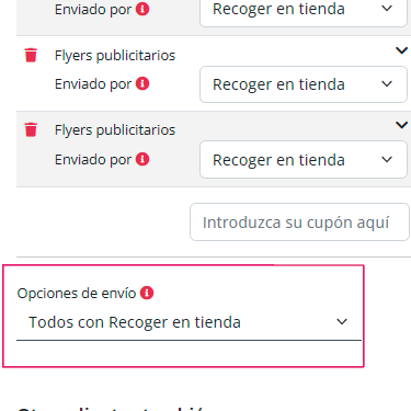 Cada uno tendrá un precio de gastos de envío o será gratuito como el de "Recogida en tienda".