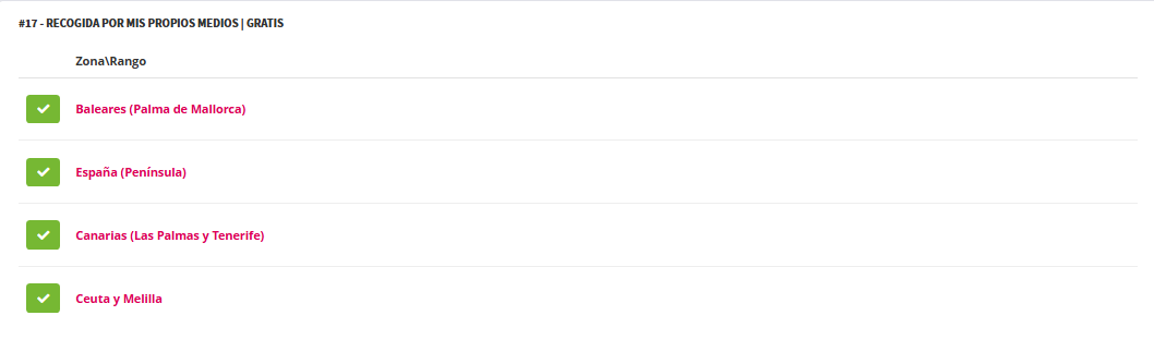 - Por rangos de peso . Requiere crear rangos por peso de los productos según zona y transportista.