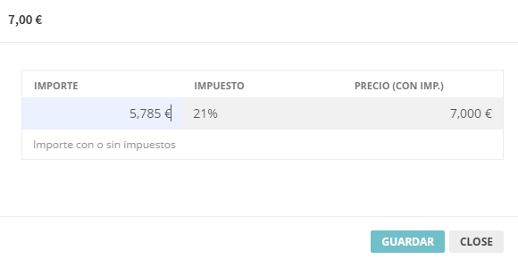 4.11 Especificar el importe con o sin IVA y  clic botón guardar.