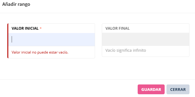 - Si no se establece valor final en el rango, (∞) el sistema lo interpreta como hasta el infinito.