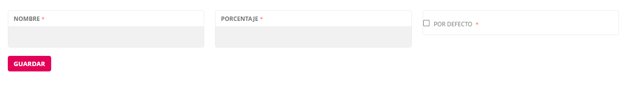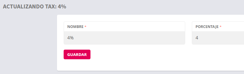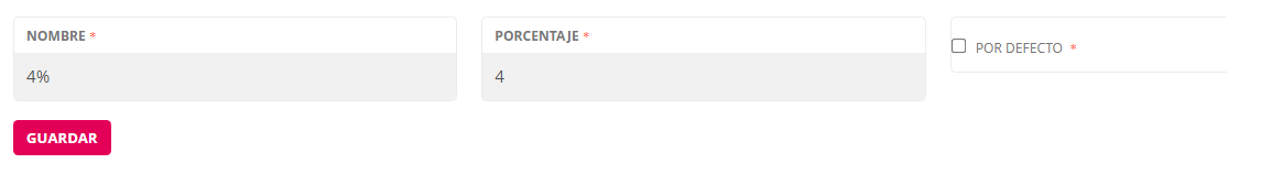 3.3 Especificar nombre y porcentaje. En estado por defecto puede estar un único impuesto de los creados.