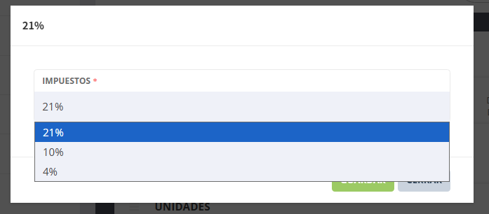 3.6 Los impuestos creados estarán disponibles para seleccionar uno de ellos en las interfaces del gestor de la tienda en los selectores de impuestos.
