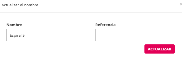 Al hacer clic en el botón actualizar se accede a esta interfaz, en la que se puede modificar el nombre y la referencia del valor.