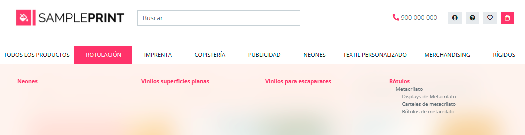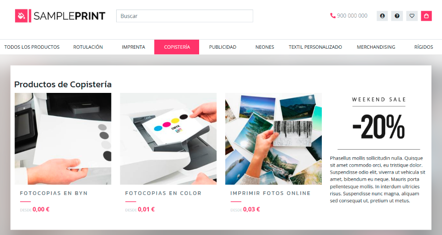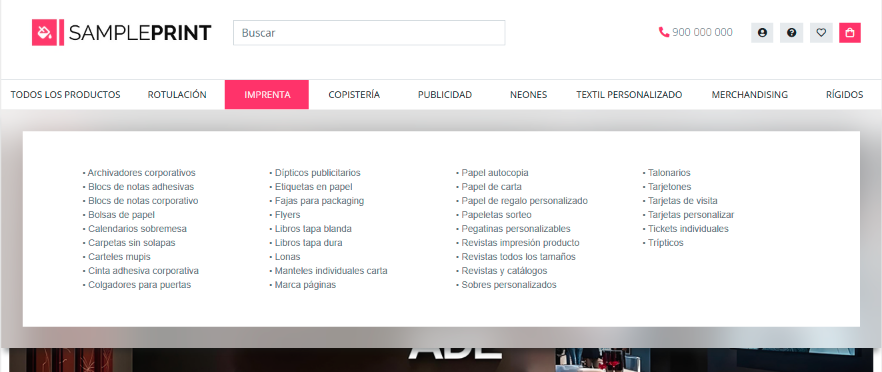 2.3 Desplegable de menú elemento tipo categoría creado con bloques productos, texto e imagen.