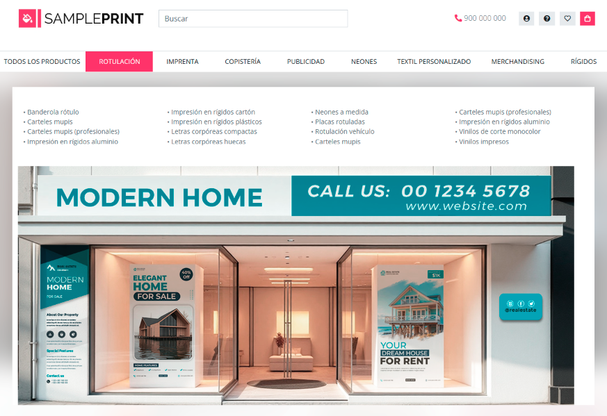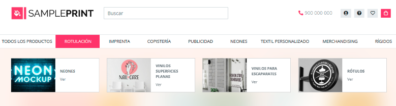 Ejemplo 9. Desplegable de menú elemento tipo categoría creado con bloques de imágenes y bloque html.
