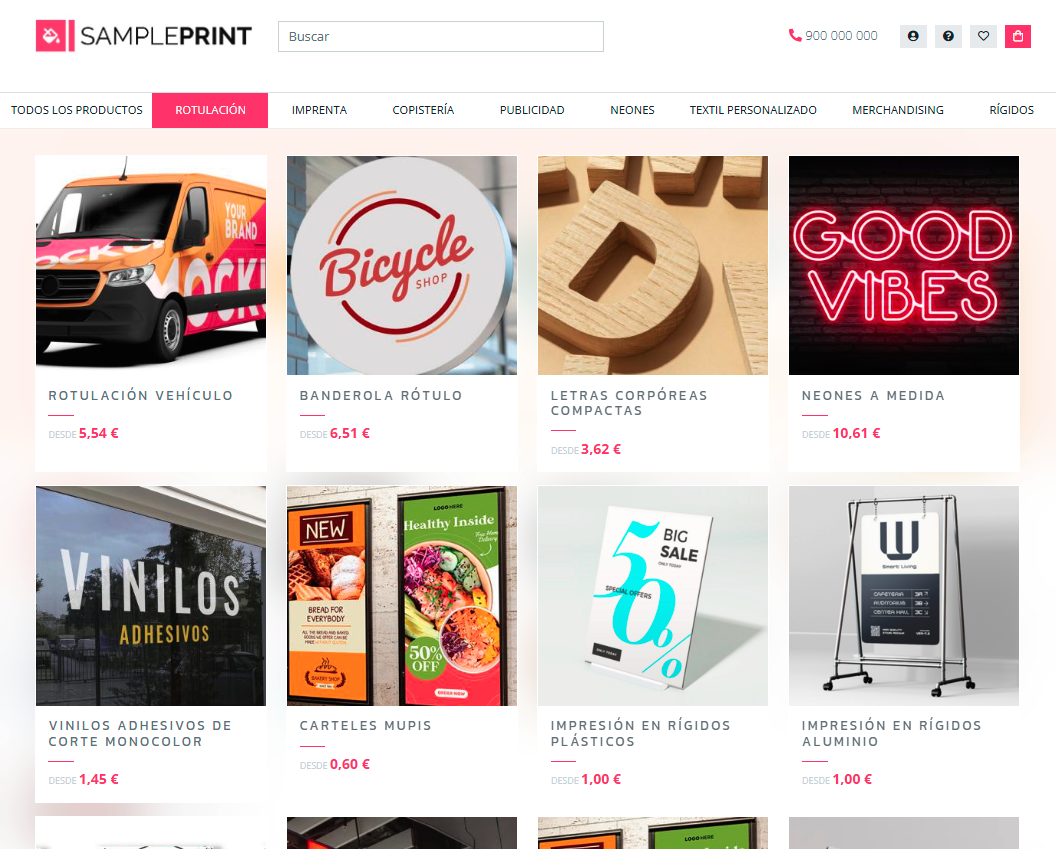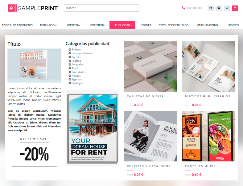 1.2 Categorías tarjetas. Muestra las subcategorías hijas de la categoría padre. En modo tarjeta.
