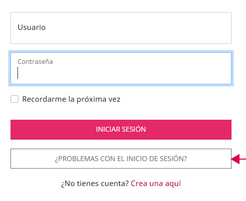 2. En la interfaz que se abre hacer clic en botón "PROBLEMAS PARA INICIAR SESIÓN".