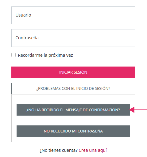 En la siguiente página hacer clic en botón "No ha recibido el mensaje de confirmación".