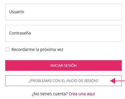 En la siguiente página hacer clic en botón "¿Problemas con el inicio de sesión?"