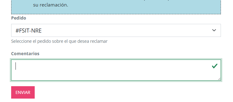 1.6 El cliente opcionalmente puede añadir comentarios en su reclamación.