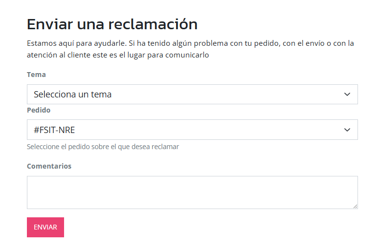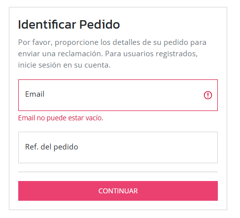 Un cliente que quiere abrir una reclamación de un pedido que ha tramitado como usuario invitado ha de seguir los siguientes pasos:
