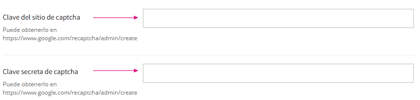 Requiere obtener las claves del sitio (site key) y la clave secreta (secret key) de Google reCAPTCHA.