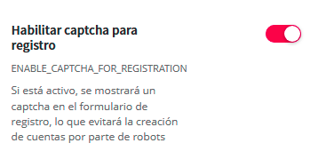 3. Busca los botones para activar captcha. Tres botones posibles a activar para: