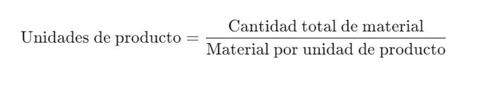 Para calcular cuántas unidades de producto puedes fabricar a partir de un material, necesitas conocer estos datos: