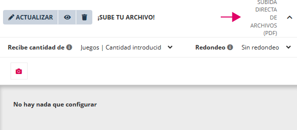 Todas pueden ser usadas para impactar importes de variables en otras características. Supuestos a continuación./// Para que "Sube tu PDF" pueda multiplicar las páginas por los juegos ha de recibir la cantidad de Juegos | Cantidad introducida por el usuario. Así calcula "Sube tu archivo" la "Cantidad calculada".
