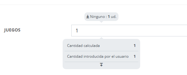 Vista de cantidad de unidades que da salida la característica con cantidad de unidades de producto (juegos en 1).