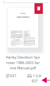 | Rango de páginas activas | Selector informativo. Rango de páginas no descartadas (ej. 1–637, 1–7). Indica las páginas actualmente configuradas para impresión. |