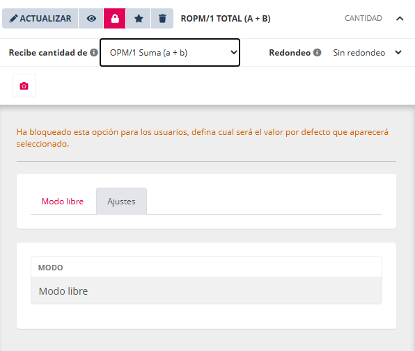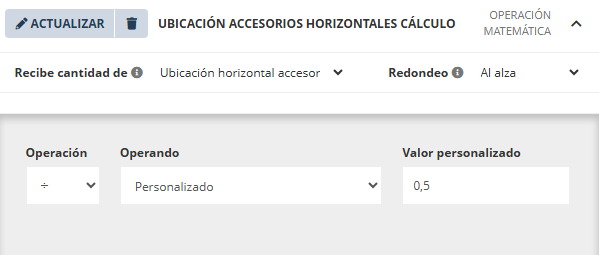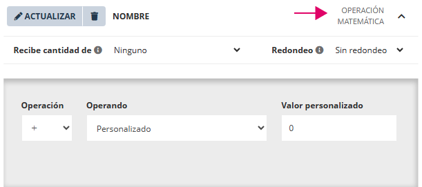 b) Con el modo personalizado se puede hacer la operación matemática con el primer operando (Recibir cantidad de: Tipo de cantidad) y como segundo operando una cifra. La cifra se escribe en el campo llamado "Valor personalizado".