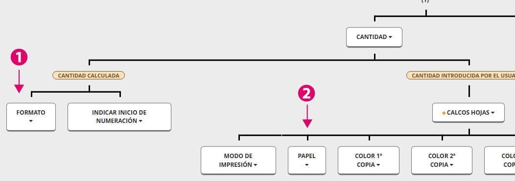 2. Papel. Es la característica de tipo materiales. Es en dónde el cliente selecciona el material. Uno de los que han sido creados por el administrador en la librería de materiales y que ha seleccionado y añadido a la característica del producto.