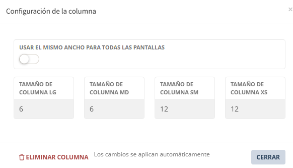 - El bloque está ajustado con, "Usar el mismo fondo para todas las pantallas", desactivado.