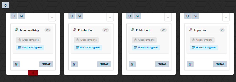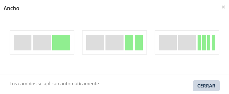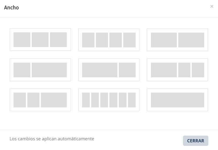 La opciones de añadir cantidad de columnas  por fila predeterminadas son las siguientes.