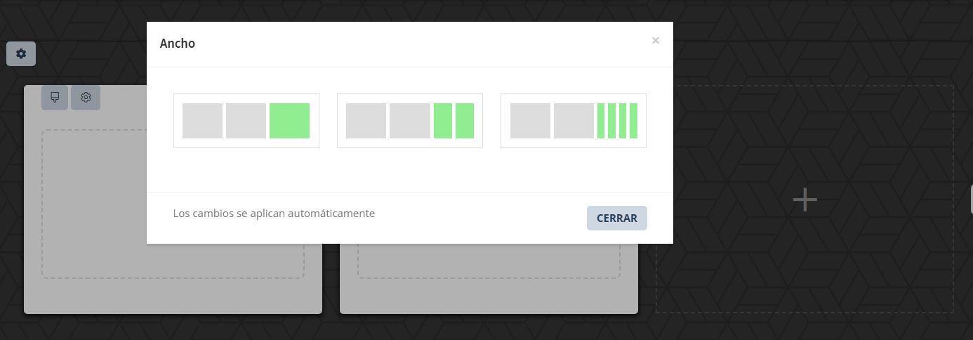 Desde el ajuste "Tamaño de columna se pueden especificar las unidades que ha de ocupar la columna. Máximo 12 unidades.