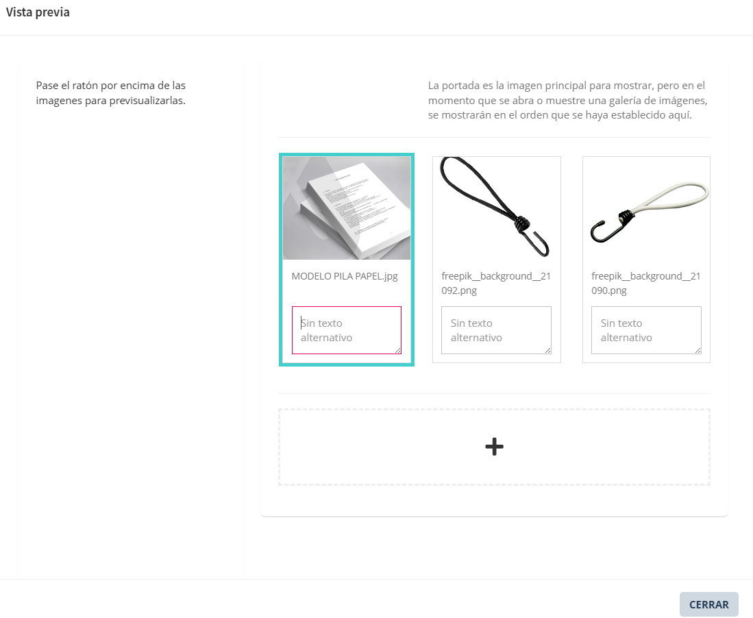 permite ordenar la posición en la que aparecen. Con clic en la imagen, mantener y arrastrar se puede cambiar la posición de las imágenes.