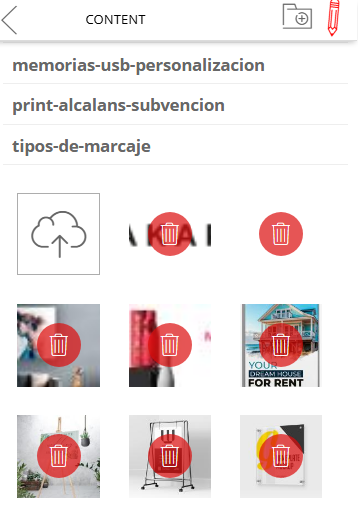 Al hacer clic en el botón se accede a la interfaz de edición de subida y gestión de imágenes por el administrador para presentar en la tienda.