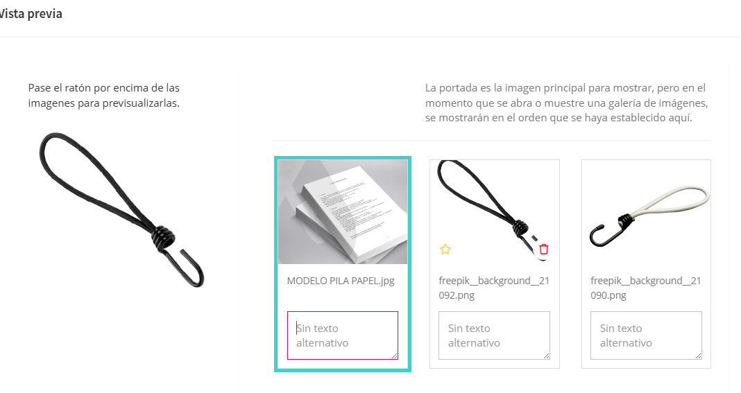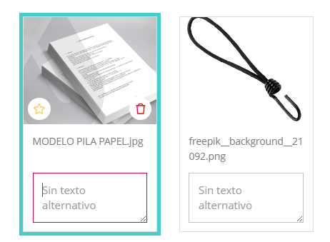 Para definir la imagen por defecto se presenta un icono de estrella. Este icono aparece al poner el cursor sobre la miniatura de la visualización de la imagen. Al hacer clic en él se establece la imagen como por defecto.