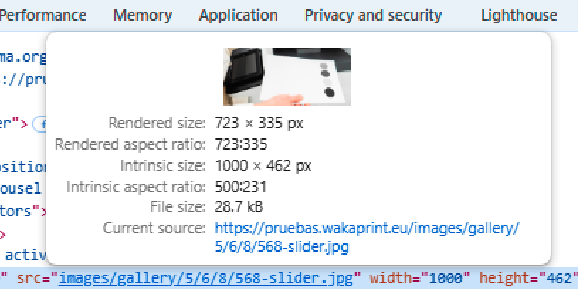 Para ver más detalles de que tipo de redimensionamiento se está usando inspeccionar con el navegador el código de la imagen. Se reconoce el tipo de tamaño de visualización de imagen en el nombre de esta: