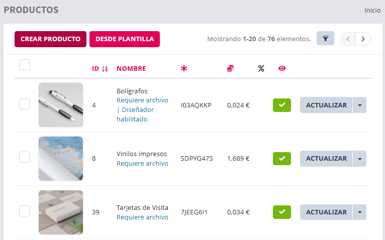 Este tipo se usa para los listados o secciones de la vista pública o gestor en las que se muestran en pequeño tamaño como por ejemplo; en el listado de productos del gestor.