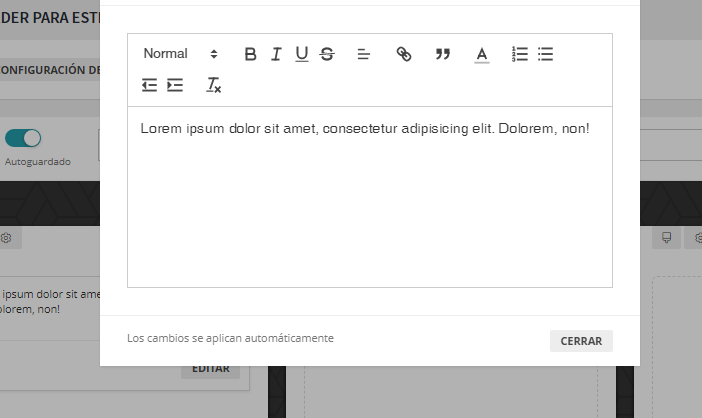 Dispone de una interfaz para dar formato, y estilos a los textos, múltiples tipos de encabezados, listas, colores de tipografías y textos enlazados.